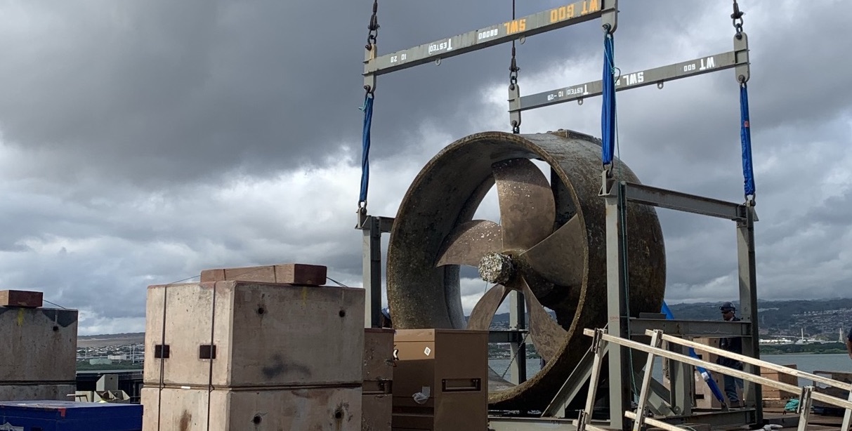 A valued client contacted Salner Contracting to exchange a retractable azimuthing thruster for its managed semi-submersible rig stationed in the famous Pearl Harbor of Oahu, Hawaii. As Salner Contracting successfully completed similar thruster overhauls with this same rig two times prior, we attended once again to take on the challenge of exchanging the #4 retractable azimuthing stern thruster with limited clearance between the flat bottom of the rig and the ocean seabed. In conjunction with this service, Salner Contracting tackled a full Class UWILD, full Hull Cleaning, and installation/ removal of blanks on all 16 sea chests to ensure the rig was cleared for its dry dock extension.
