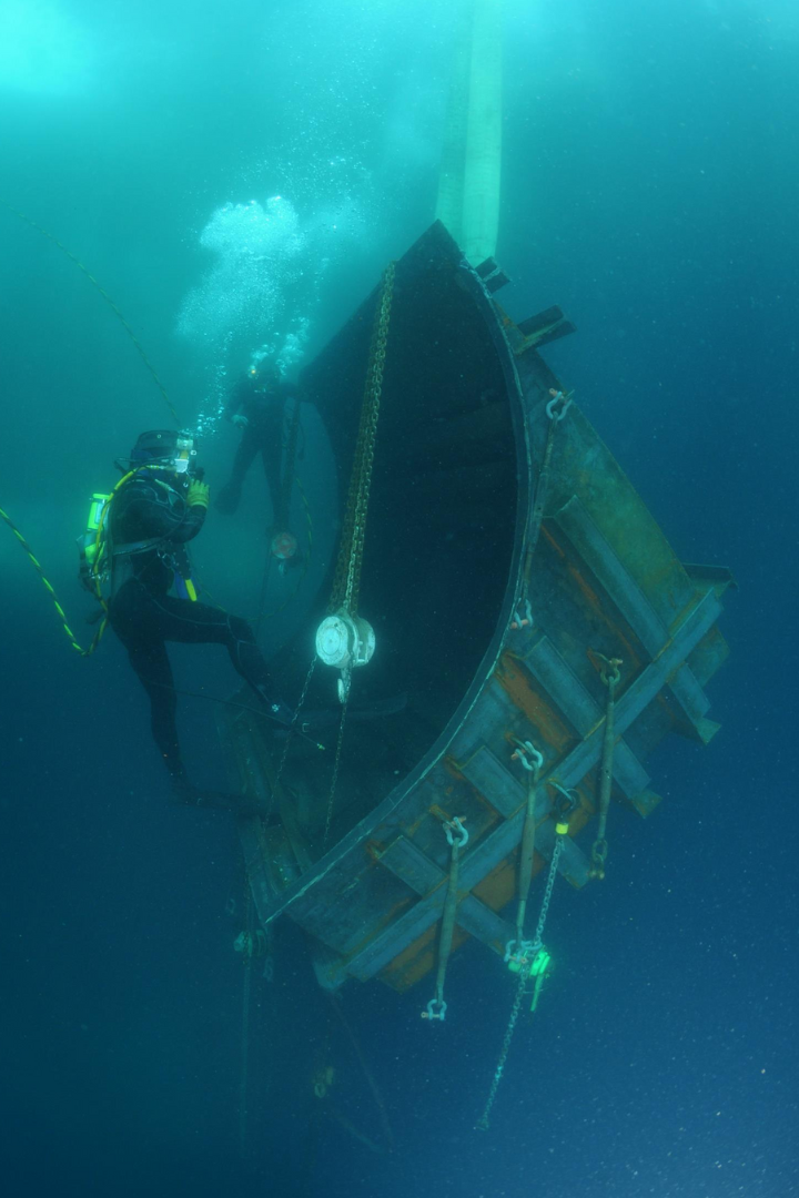 Salner Contracting worked together with owner and class to develop repair plan that included the design and installation of an engineered cofferdam.